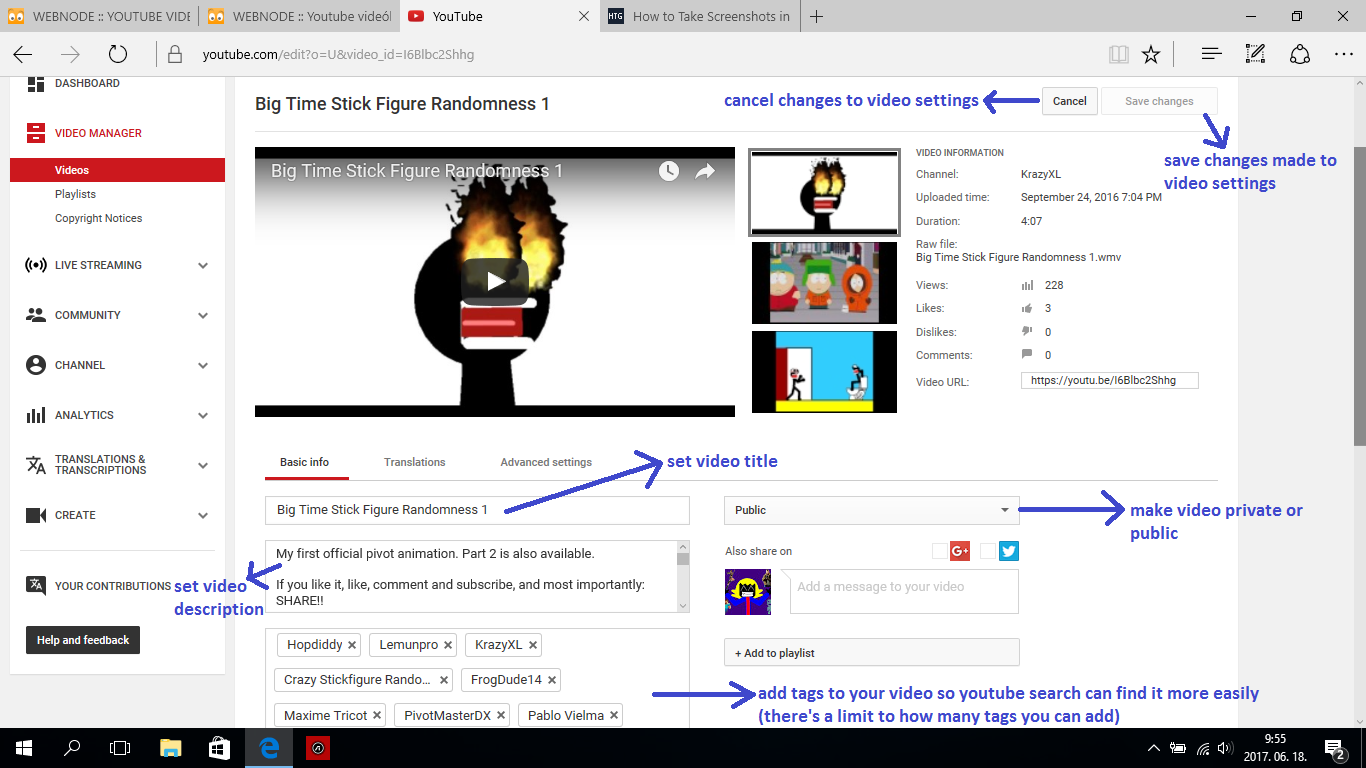 5.: Youtube video uploading and managing